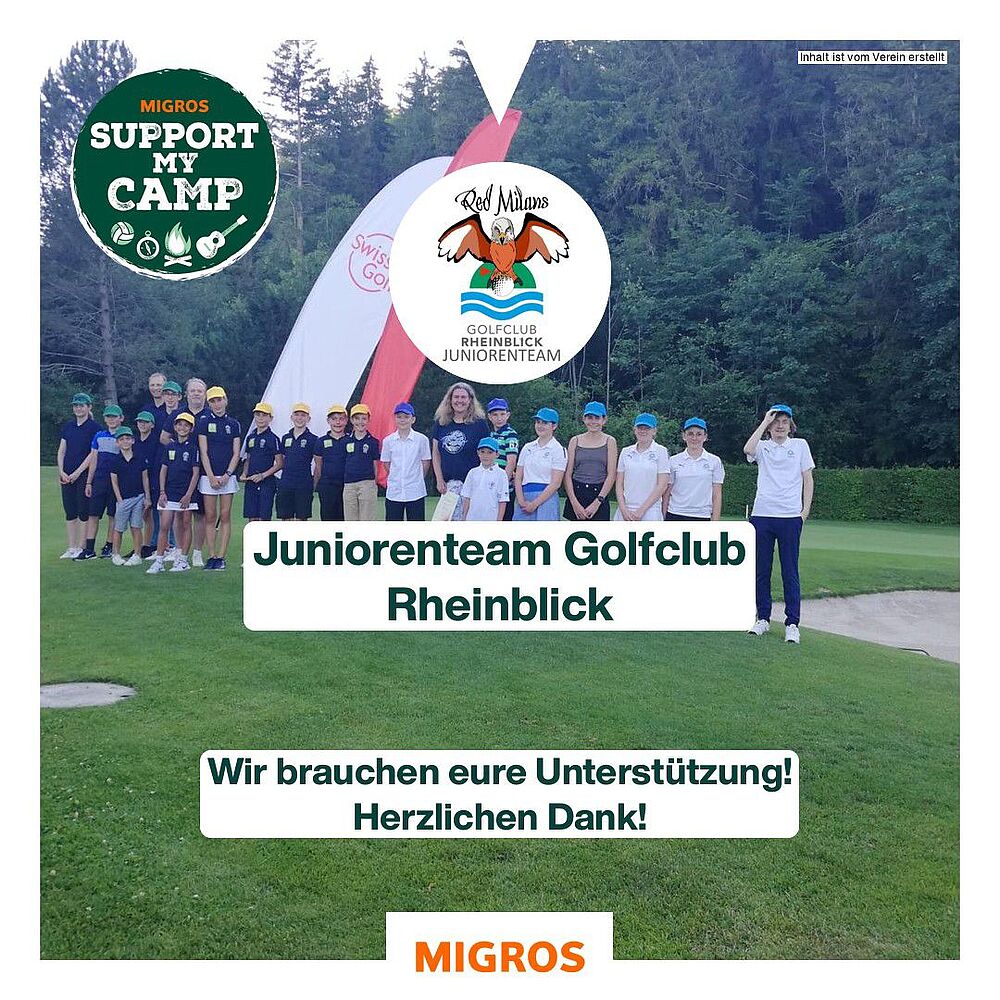 Die Migros führt derzeit eine Sammelaktion für Junioren-Camps durch. Auch die Junioren des GC Rheinblick nehmen daran teil und freuen sich über Ihre Unterstützung.
